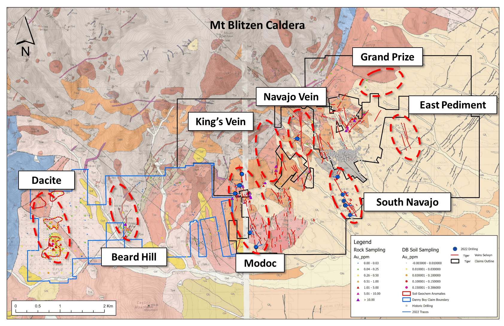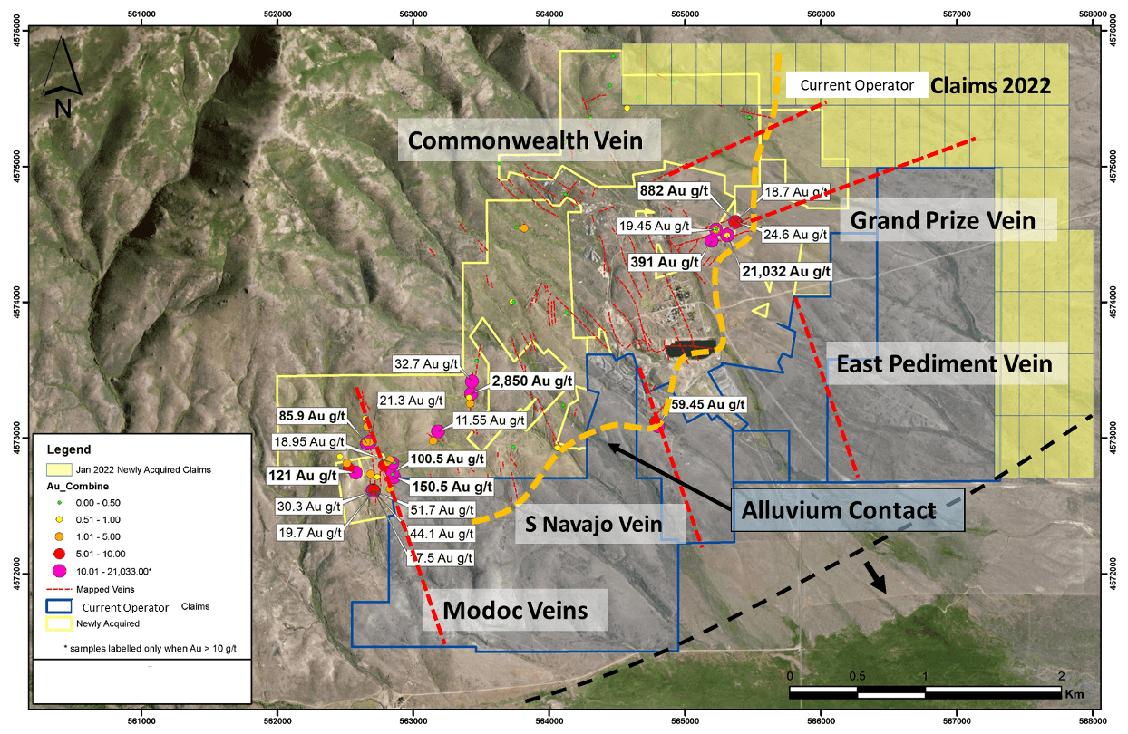 Modoc: 2,850.00 g/t Au and 1,460.00 g/t Ag